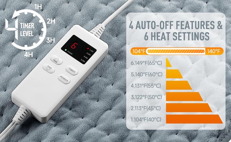 Special Feature Overheating protection, 6 heat settings, 4 timer Luxurious soft flannel